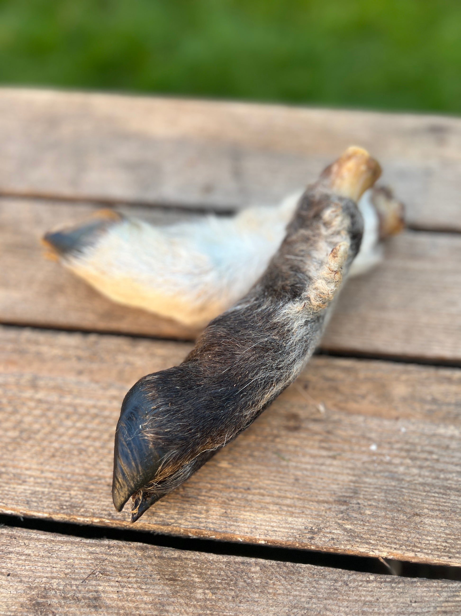 Sammansättning 100% torkat lammben med päls och klöve